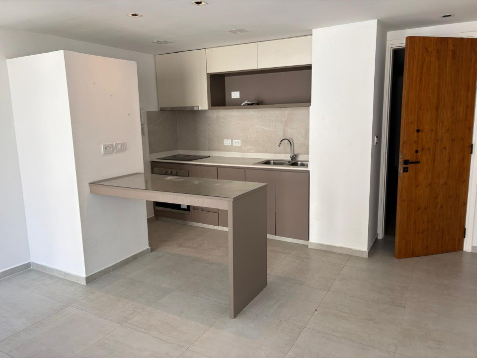 Departamento de un dormitorio con placard empotrado, living comedor con cocina integrada, baño completo y balcon corrido.